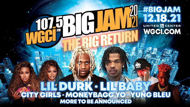 IT'S UP‼️ Here is round one of our #BIGJAM 2021 lineup!😁 Lil Durk 🔥 Lil Baby 🔥 Moneybaggyo 🔥 Citygirls 🔥 Yung Bleu 🔥 & MORE TO BE ANNOUNCED! 😎 🗓️ December 18th, 2021 📍United Center 🎟️ Tix go on sale Oct 14th! CLICK HERE FOR TICKET INFO!